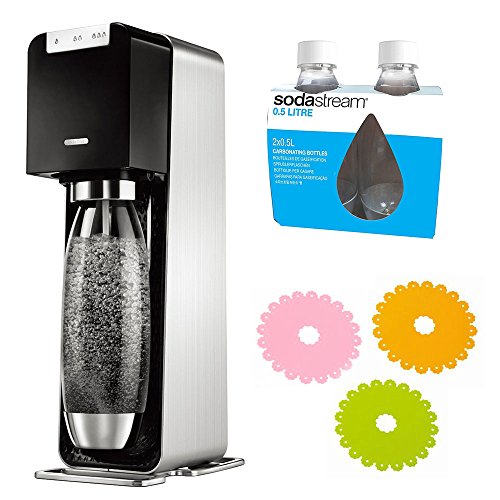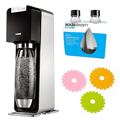 Sodastream 소다 스트림 페이퍼 이미지 소다 스트림 Source Power 소스 파워 스타터 키트 블랙 + 가스 실린더 60L + 퓨즈 보틀 블랙 500ml 2개 + 실리콘IH매트 3매 세트