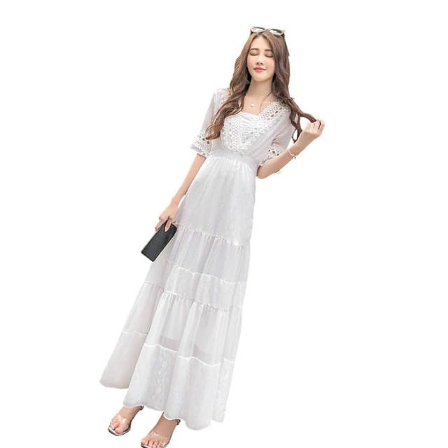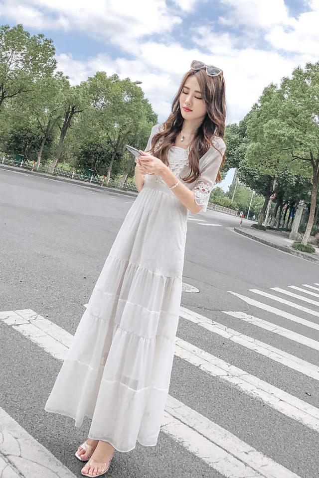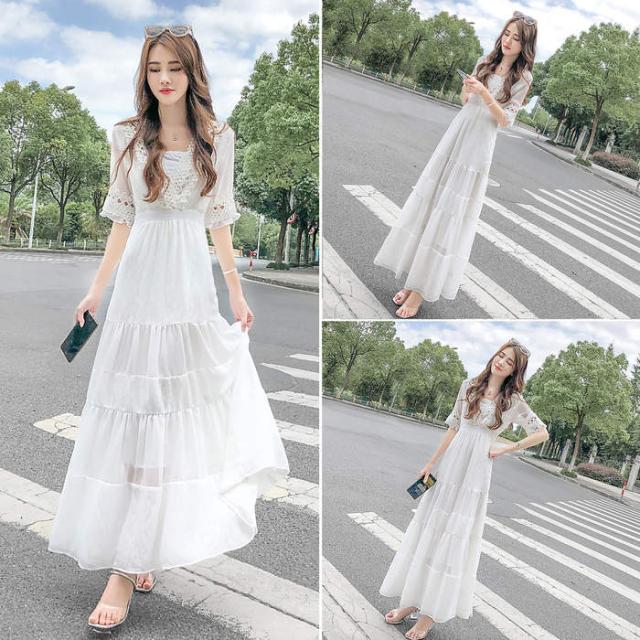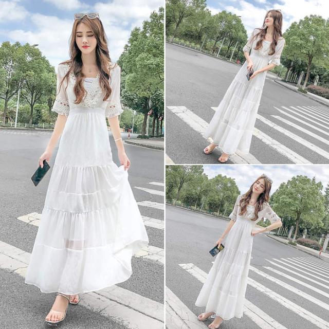 女性の服 ホワイト シフォン ワンピース 2018年秋トレンド