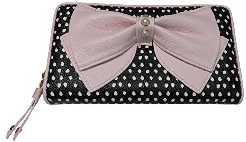 Betsey Johnson Women's Zip Around Wallet, Black/White/Pink