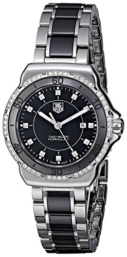 -. Binding : Watch -. Brand : TAG Heuer -. Color : black -. Department : WATCHE -. EAN : 7612533096967 -. Feature : Two-tone watch in stainless steel with diamond-set bezel, diamond hour markers, and black center links on band / Quartz movement with analog display / Protective anti-reflective sapphire crystal dial window / Features screw-down crown, luminous hands, and deployment clasp with push-button closure / Water resistant to 660 feet (200 M): suitable for recreational scuba diving -. Label : Tag Heuer -. Manufacturer : Tag Heuer -. Model : WAH1312.BA0867 -. MPN : WAH1312.BA0867 -. PackageQuantity : 1 -. PartNumber : WAH1312.BA0867 -. ProductGroup : Watch -. ProductTypeName : WATCH -. Publisher : Tag Heuer -. ReleaseDate : 2014-09-30 -. Studio : Tag Heuer -. Title : TAG Heuer Women's WAH1312.BA0867 "Formula 1" Stainless Steel Two-Tone Watch with Diamonds