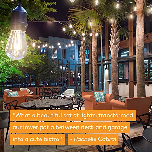 TRANSFORM YOUR BACKYARD INTO A BEAUTIFUL OUTDOOR RETREAT: The Ambience Pro LED Outdoor String Lights will create a beautiful backyard atmosphere where you can sit back, relax, and enjoy the evening. These vintage Edison bulb string lights with exposed filaments give off a warm, nostalgic glow so that you can come home after a busy day and enjoy your very own retreat. Ambiance Pro lights are bright enough to dine under without a glare so that you can enjoy your dinner outside on a nice evening