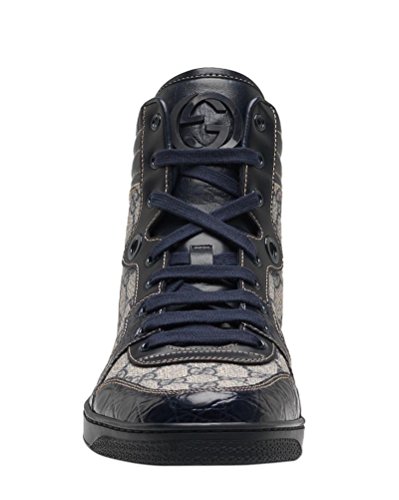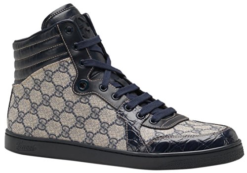 Binding : Apparel Product Description Gucci Men's Blue Crocodile Leather GG Guccissima High Top Sneakers Shoes Made in Italy Beige / Blue GG Plus fabric, contrasted with blue leather and Crocodile Leather Rubber Interlocking GG detail Rounded toe Rubber sole Gucci size G 11.5 = US?12.5 Gucci size G 12.5 = US?13.5