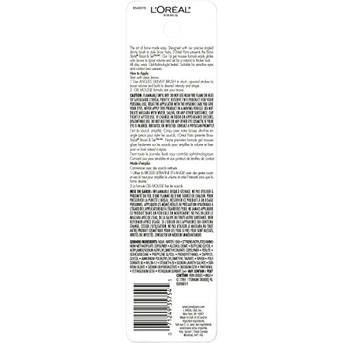 The art of brow made easy. Designed with our precise angled skinny brush to style brow hairs, L'Oreal Paris presents the Brow Stylist Boost & Set. Our 1st brow gel mousse formula easily glides onto brows to boost volume and set for a natural to thicker brow makeup look. All day wear. Smudge-proof. Water-resistant. Ophthalmologist tested. Suitable for sensitive eyes and contact lens wearers. Packaging may vary. What you receive may not be what is reflected on site.Feature