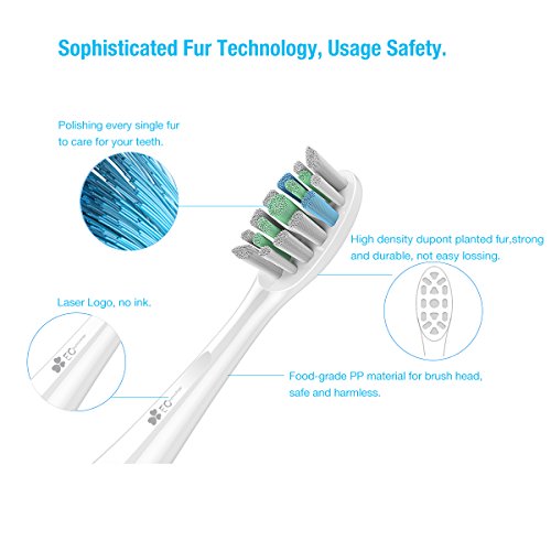 EC Technology Electirc Toothbrush Replacement Deep Clean Ergonomic Health Brush Heads Refill Set of 2 Compatible For EC Technology Automatic Sonic Toothbrush, White