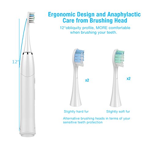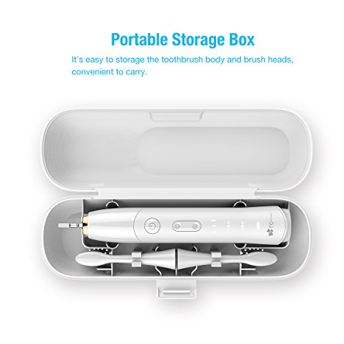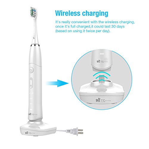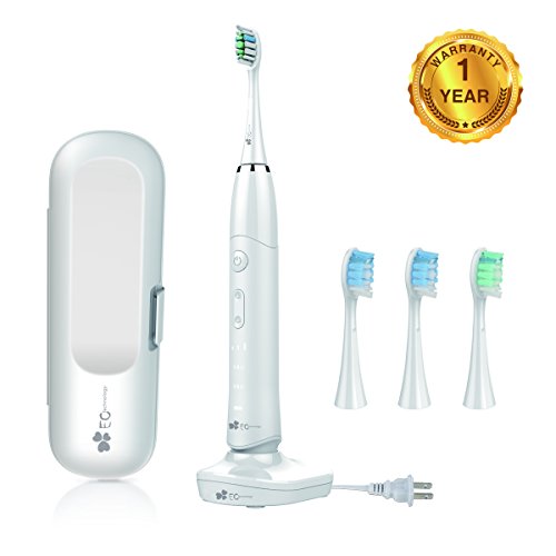 EC Technology Automatic Sonic Electric Toothbrush Induction Rechargeable Waterproof 35000 Power with 4 Ergonomic Health Replacement Heads and Travel Case for Adults-White