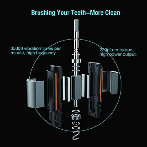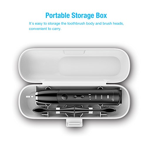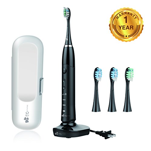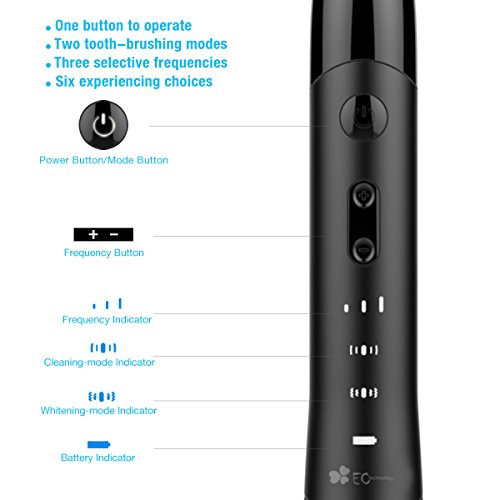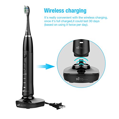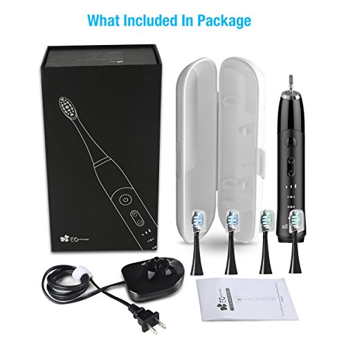 EC Technology Automatic Sonic Electric Toothbrush Induction Rechargeable Waterproof 35000 Power with 4 Ergonomic Health Replacement Heads and Travel Case for Adults-Black