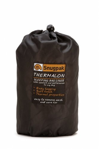 Studio : Sportsman Supply Inc. Publisher : Sportsman Supply Inc. Binding : Lawn Patio Product Description A body hugging yet stretchy knitted Snugpak Thermalon Liner will significantly boost the thermal properties of your sleeping bag when temperatures drop. This is a popular choice and with good reason, it offers so much extra warmth. A strong wicking action ensures comfort while its soft wool like touch gives an instant sense of warmth. Weight: 17oz Pack size: 9 x 5 in. 0
