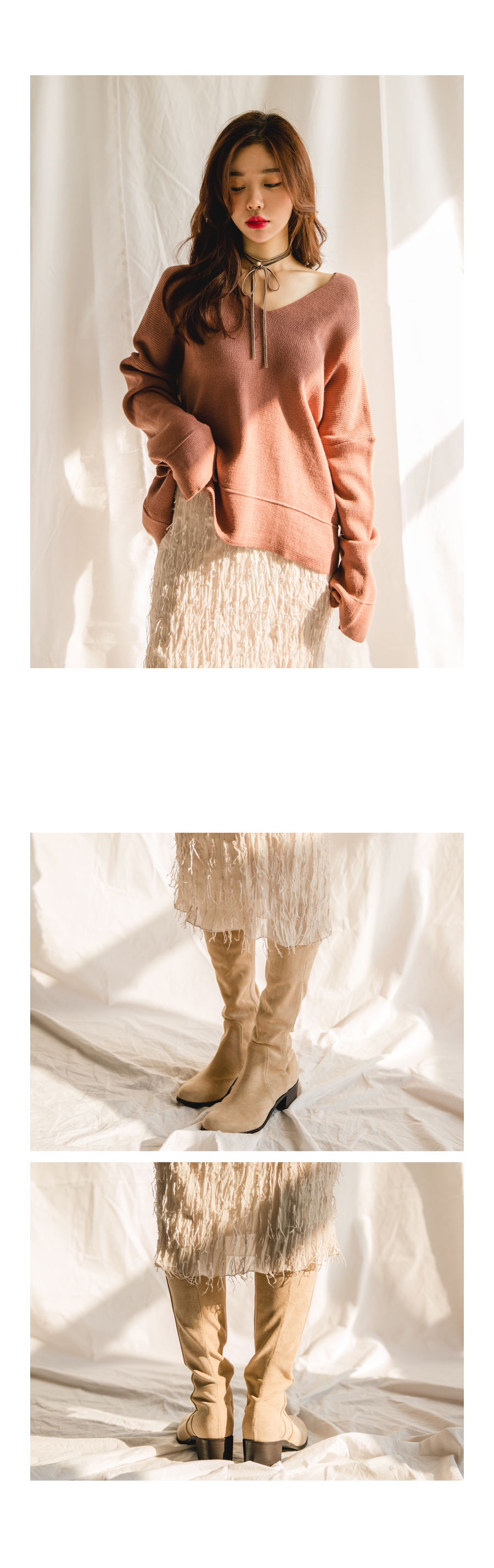 전체적으로 루즈한 핏감의 브이넥니트입니다