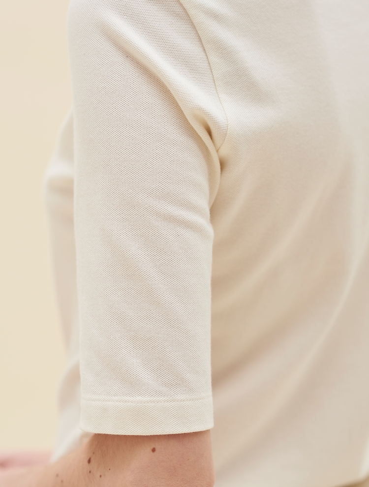 - 캐주얼하면서도 여성스럽게 착용 가능한 피케 티셔츠입니다.