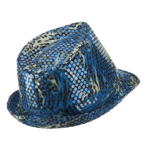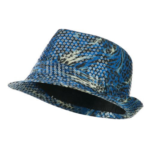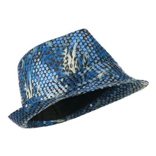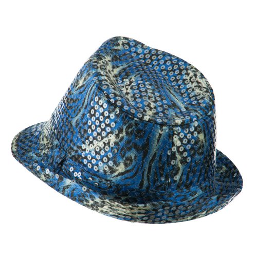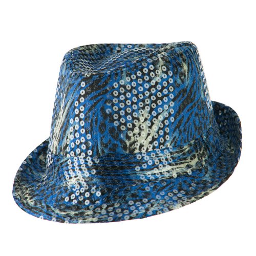 Binding : Apparel Product Description Animal print designed fedora features sequins all over for ladies. Crown is accented with a matching hat band. Crown features tear drop shaped top. Front brim is downturned and back brim is upturned. Our designed fedora is great for any outdoor and indoor event in all the seasons. All Season. Soft, thin and lightweight material. 9(W) X 10(L) X 4 1/2(H) inches. Available in different colors and styles. 0