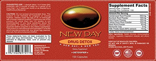 Product Description New Day Drug Detox supports the body's systems elimination of toxins naturally. 0