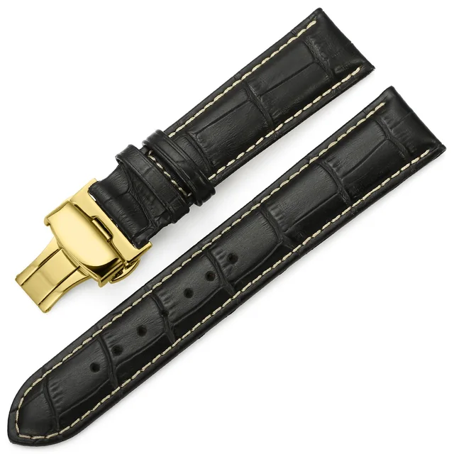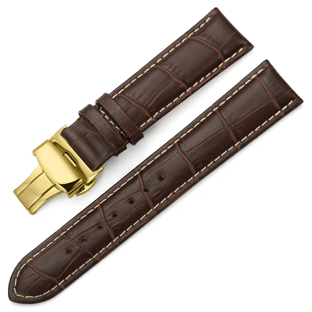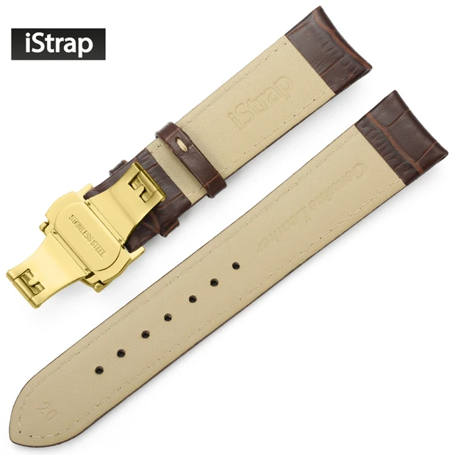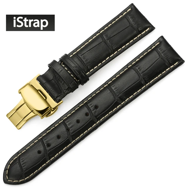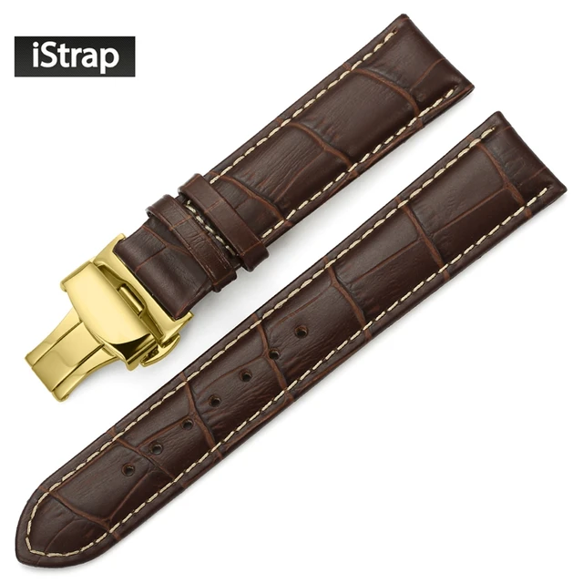 | [해외] Istrap 18 미리메터 19 미리메터 20 미리메터 21 미리메터 22 미리메터 24 미리메터 정품 가죽 시계 밴드 스트랩 골드 butterfly 버클 손목 omega tissot 오리스 |