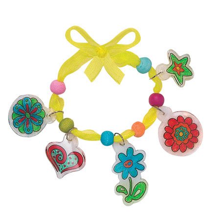 Studio : ART N CRAFT Publisher : ART N CRAFT Binding : Toy Product Description Jewelry magic. It happens right before your eyes. Select an image, color it and carefully cut it out. Flowers, animals, hearts, so many options to choose from. Place your artwork in the oven, but don't go away. Kids shriek in excitement as they watch their image literally shrink to a third of its original size. Your charm may be done, but the fun has just begun. Bead a charm bracelet, send a greeting card to grandma, design a key chain, or make yourself a pretty hair clip. Shrinky Dinks Deluxe brings you a whole factory of activity, with oodles of supplies. The art gets smaller while the excitement keeps growing - it's the Shrinky Dinks way. Shrinky Dinks Deluxe Color, bake and watch your artwork shrink! Use charms to create jewelry, key chains, gift tags, keepsakes Encourages curiosity, fine motor skills, creativity Images feature birds, fruit, sweet treats, hearts, animals, flowers, friendship Includes 10 sheets Shrinky Dink film (5 x 8 inches), bright beads, shell beads, key chain slip, 13 gift tags, 8 colored pencils, pencil sharpener, hole punch, 50 jump rings, 5 yards elastic cord, 2 metal charm bracelets, 6 yards emboridery floss, 3 yards tulle ribbon, 3 hair clips, needle threader, adhesive foam circles Ideas and instructions included Images shrink to 1/3 of original size Bake in oven, adult supervision required 0