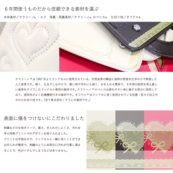 ☆2017년도 모델☆하트&레이스 프린트☆손잡이부 클라리노F란도셀☆3 색전개소녀 A4플랫 파일 대응 일본제