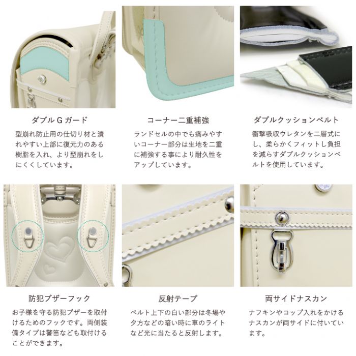 ◎란도세루(초등학생이 어깨에 매는 가방)의 양싸이드에는 나스카《》가 각 하나씩 붙어 편리,그리고 양방의 어깨 벨트에는 방범 buzzer 등이 매어 달리는 D캔부.게다가(더구나) 이D캔에게 사용 하고 있는 대갈못과 란도세루(초등학생이 어깨에 매는 가방) (주식,순무우먹이)카브《세》부분하의 대갈못은 야간에 차의 라이트 등에서 반사하는 반사 대갈못이 되고 있습니다.또한란도세루(초등학생이 어깨에 매는 가방) 중앙의 대부분으로도 반사 테이프를 사용♪♪