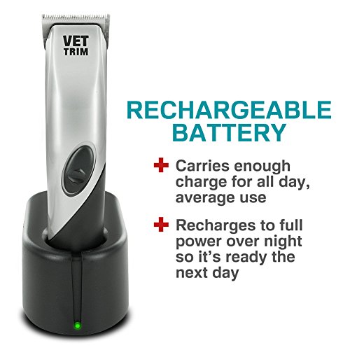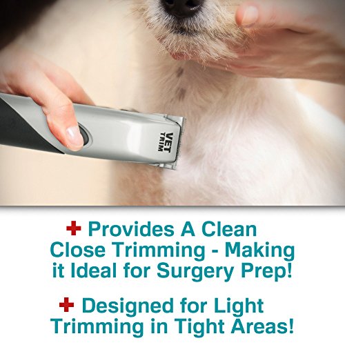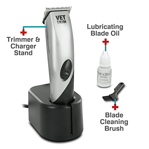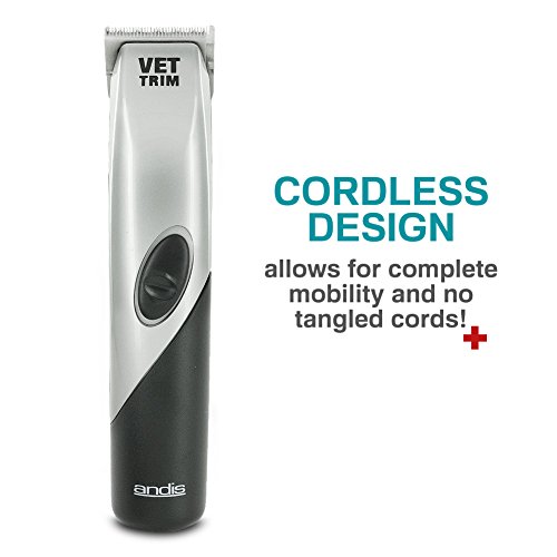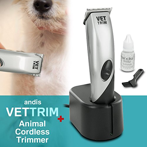 Studio : Andis (Pet) Publisher : Andis (Pet) Binding : Misc. Product Description The Andis Vet Trim Trimmer is a cordless, detachable blade trimmer that provides clean and close trimming around wounds and incisions. Its extremely quiet operation will not frighten sensitive or injured animals. It includes a #40 detachable, surgical, stainless-steel blade for easy sanitation, changing and cleaning making it great for surgery prep. It’s also good for light trimming in tight areas and recharges to full power overnight. It has a Ni-MH battery for superior performance and less memory effect and is equipped with protection circuitry to prevent over charging. Kit Includes: Trimmer, Detachable #40SS surgical stainless-steel blade, Charger stand, Blade cleaning brush and Lubricating blade oil. 0