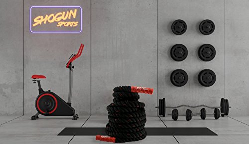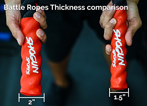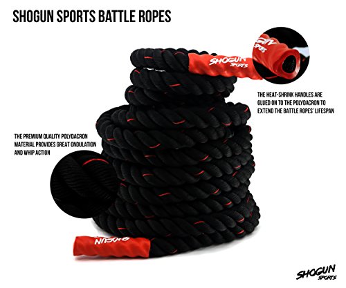 Studio : Alianza Products Publisher : Alianza Products Binding : Misc. Product Description Introducing the Shogun Sports Battle RopesThe Shogun Sports Battle Ropes are a great alternative to traditional weights and are great to help you create more endurance, strength and create more gains. The key to their effectiveness is that they work each arm independently, eliminating strength imbalances as they sculpt your muscle.Product FeaturesOur Battle Ropes are made of Superior Quality Polydacron and are light weight, yet offer highest strength and greatest durability.Our Battle ropes have superior quality heat-shrink ends which make the Workout ropes more convenient to hold and will offer a better grip when performing the exercise.NOTE:We use PolyDacron for manufacturing our Battle Ropes, but it WILL show wear quickly if used on outdoor surfaces such as tarmac, concrete, heavy dirt, etc. Please note that this is common on all battle ropes and the wear won't compromise its functionality. Choosing the right size for you If you're looking for high intensity, cardio blasting workouts, we recommend the 1.5" diameter battle rope.If it's muscle gains you're after and you're prepared to perform a workout that feels more like a bench press than wind sprints the, 2.0" width battle rope is for you. These require a larger hand and stronger grip to maintain control of the battle rope. Shorter ropes aren't as fluid, but they allow for smaller spaces.The most common length is 50 feet, followed by 40' and 30' respectively. A 50' battle rope leaves you with 25' in each arm, which is a great length for creating momentum-filled waves for a smooth, low-impact workout. We recommend: All things being equal, and if you're unsure of which one to get, we recommend the 50 foot length and 1.5" width. The longer length will be the most fluid and versatile, and the 1.5" grip will be the easiest to hold and use. 0