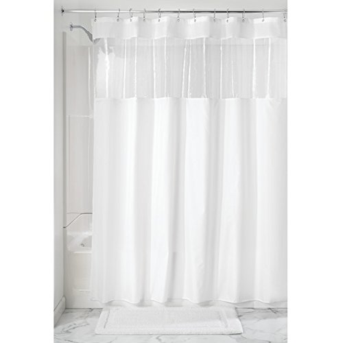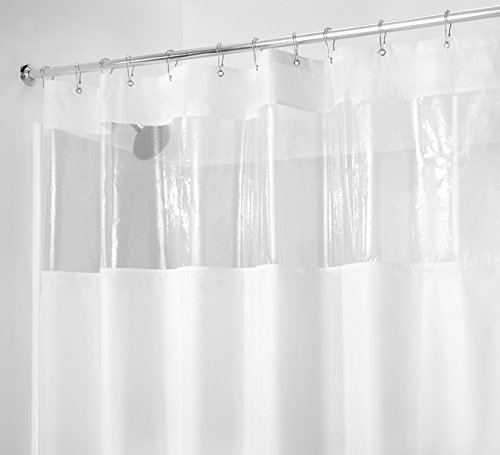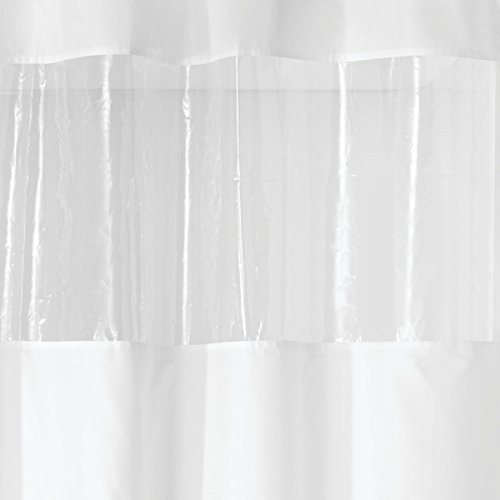 mDesign Fabric Shower Curtain with Clear Window for Bathroom - 72" x 72", White/Clear