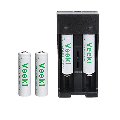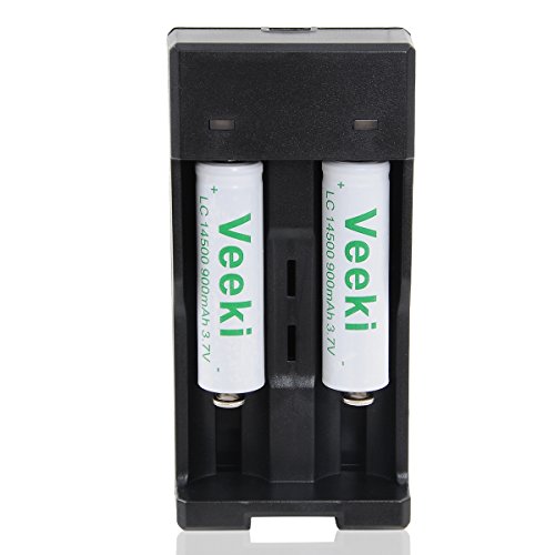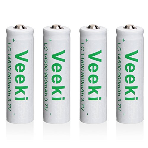 Rechargeable 14500 Battery Whit Universal Battery Charger,Veeki 3.7V 900mah 14500 3.7v Protected Rechargeable Li-ion Batteries for Camera,Flashlight Torch,Etc. (4Battery+Charger)