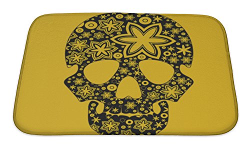 Gear New Skull with Flowers on Yellow Bath Rug Mat No Slip Microfiber Memory Foam