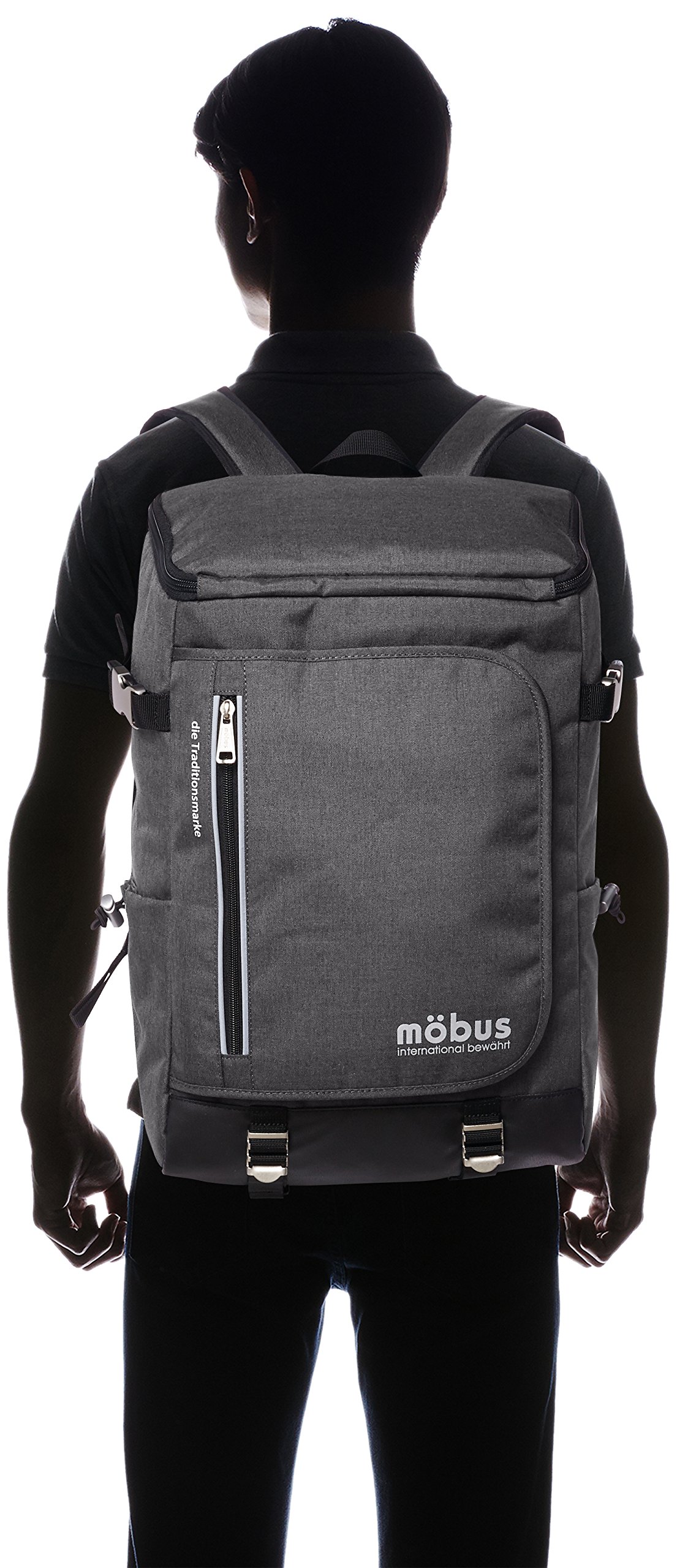 Square backpack which the front door pocket drifts a unique atmosphere adopts a preeminent compatible reflector print to the slacky slab fabric.