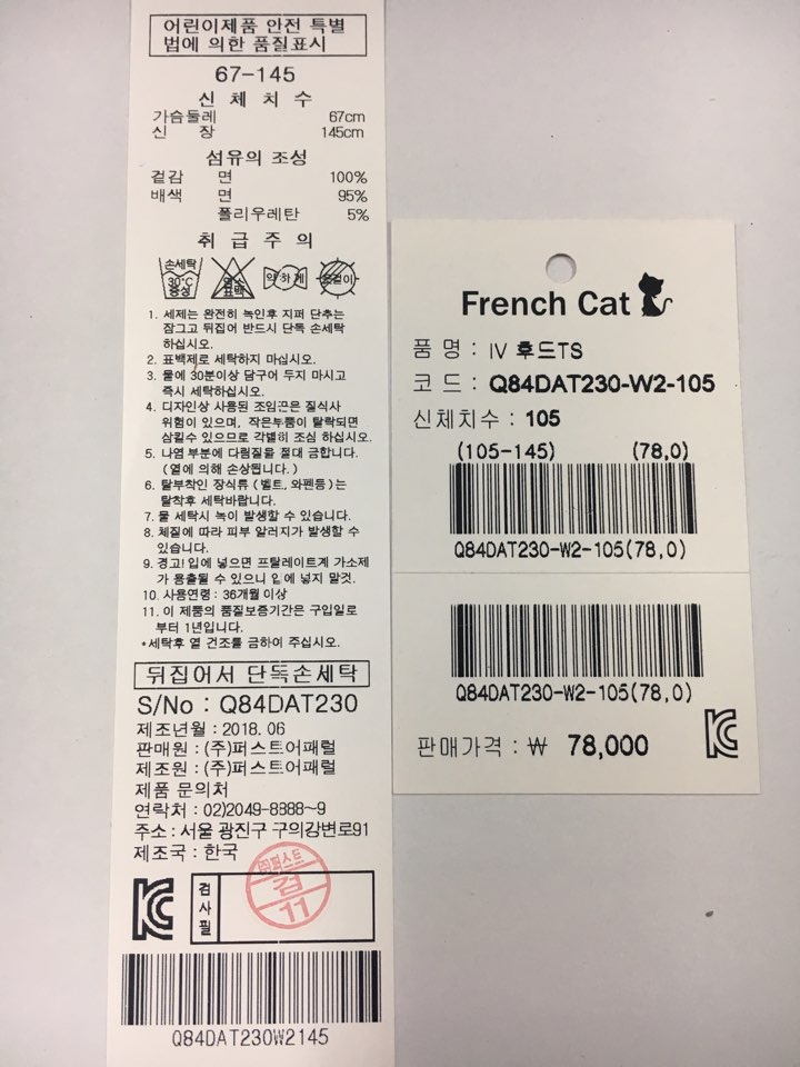 제품소재 : 겉감 면 100%배색 면95% 폴리우레탄5%