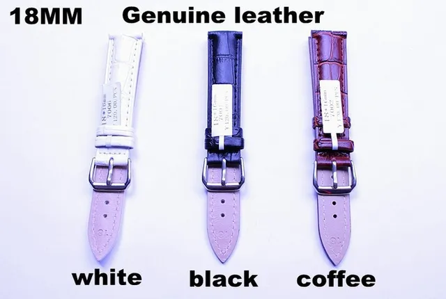 도매 10 개/몫 높은 품질 18 미리메터 정품 가죽 시계 밴드 스트랩 화이트 블랙 커피 3 가능한 색상