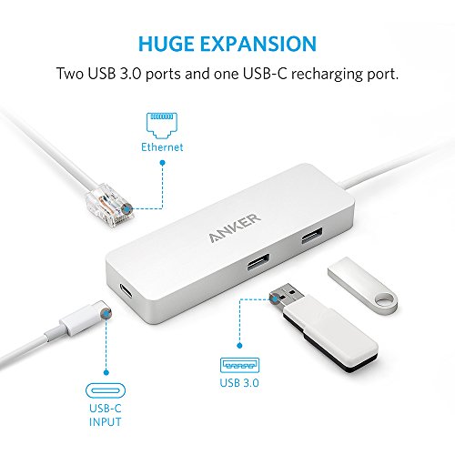 -. Title : Anker Premium USB-C Hub with Ethernet and Power Delivery, with 2 USB 3.0 Ports, 1 USB-C Recharging Port, 1 Ethernet Port and Aluminum Exterior for the new MacBook 2016 and ChromeBook Pixel