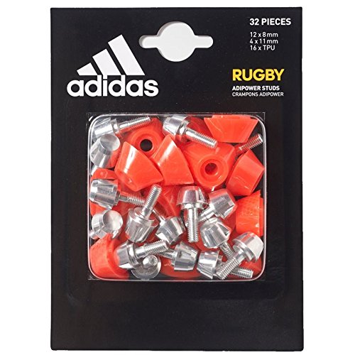 Studio : adidas Publisher : adidas Binding : Misc. Product Description ADIPOWER REPLACEMENT STUDS ALUMINIUM REPLACEMENT STUDS FOR YOUR SOFT GROUND BOOTS. These rugby studs are easily exchangeable so you can customise your grip on soft ground. This pack comes with 16 aluminium replacement studs compatible with adipower Kakari Force and adipower Kakari soft ground boots. 12 x 8 mm; 4 x 11 mm; 16 x TPU SG studs for maximum acceleration and grip on soft grounds Compatible with adipower Kakari Force and adipower Kakari SG boots 100% aluminium 0