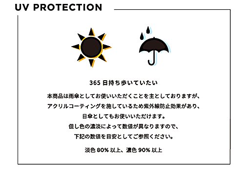 -. Feature : 本体サイズ:(全長)約51cm、(傘の直径)約90cm、(親骨の長さ)約50cm、(収納時全長)約17cm、(ケースサイズ)約15×9cm / 本体重量:約200g / 素材・材質:(本体)ポリエステル100%、(親骨)アルミ・スチール・グラスファイバー、(中棒)アルミ、(手元)樹脂 / 原産国:中国 / 開閉:手開き / 紫外線遮蔽率:(濃色)約90%、(淡色)約80%
