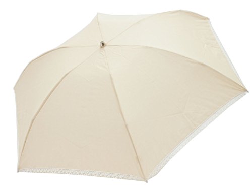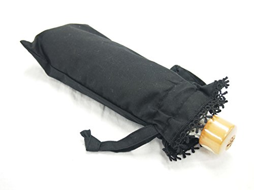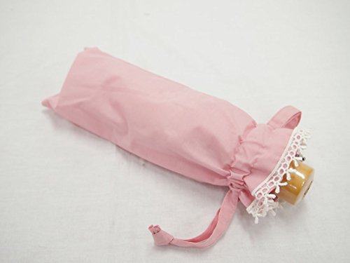 -. Title : ヒュッゲ テトロンコットン 無地×裾リボンレース 丸ミニ 全4色 折りたたみ傘 手開き 日傘/晴雨兼用 6本骨 50cm 軽量 木製ハンドル