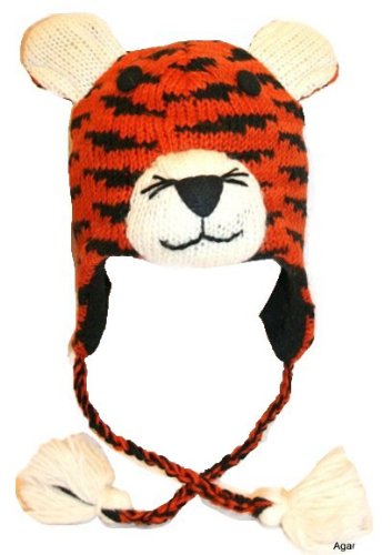 -. Title : DeLux Tiger Orange and Brown Wool Pilot Animal Cap/Hat with Ear Flaps and Poms