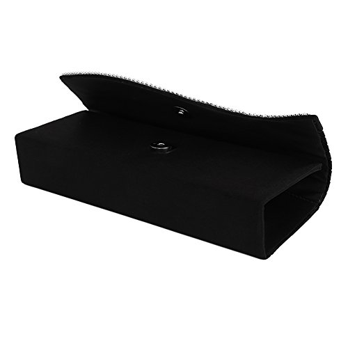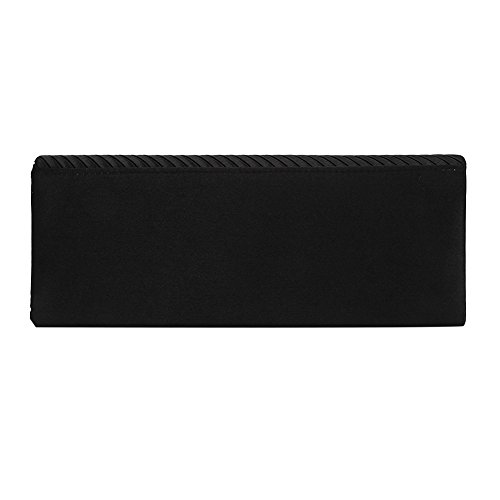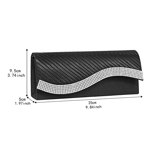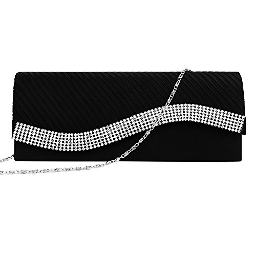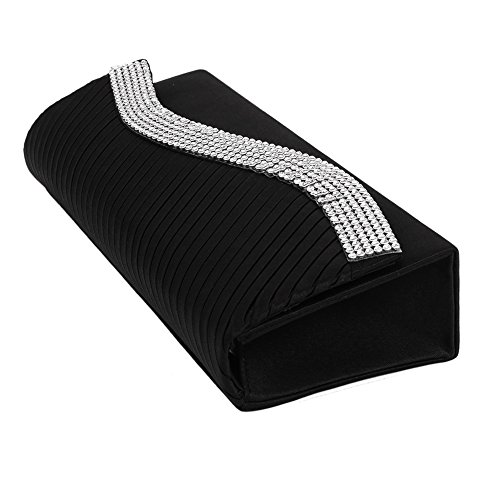 The Fashion Clutch features front pleated and crystal embellishment with magnet snap closure, and 1 removeable silver chain.