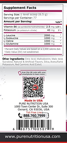 Pure Nutrition USA Bcaa Blast Powder Branched Chain Amino Acid Instantized Sports Supplement 5000mg 500/250 Grams 38/77 Servings Men Women...