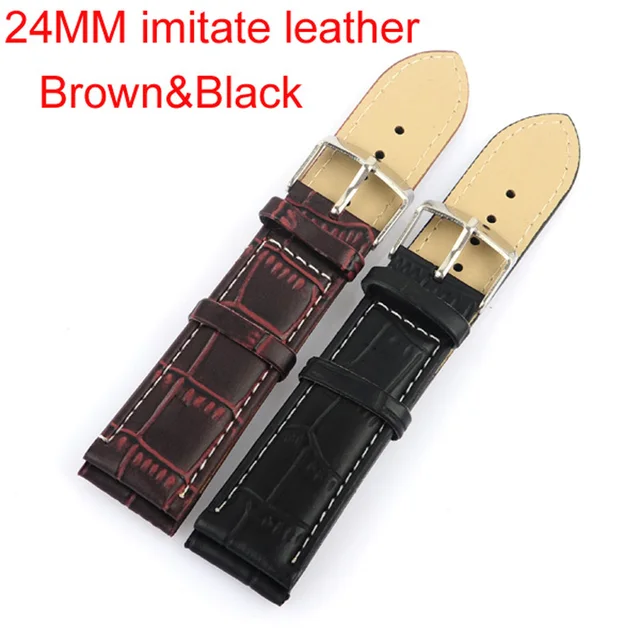 높은 품질 10 개/몫 브라운 & 블랙 24 미리메터 모조 가죽 손목 스틸 버클. 방수 스트랩, 스포츠 시계 밴드