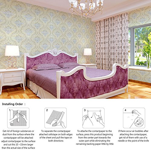 -. Feature : You can tailor it in your own way (Scene pictures are just for reference.) / Material: PVC ; Adhesive-backing, easy to peel & stick to dry flat surface / Measures 17.7 inch wide x 118 inch long (45cmx3M) / Because of different batch's tiny color difference, Please buy enough rolls at a time. / Can be used as wallpaper, wall decorative sticker, shelf liner,kitchen cabinet cover and so on