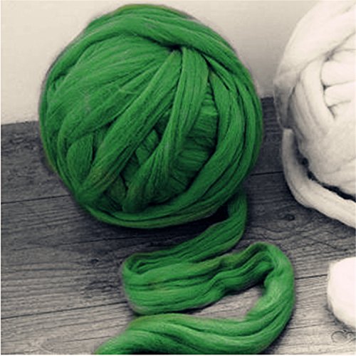 Giant Wool Yarn Chunky Arm Knitting Super Soft Wool Yarn Bulky Wool Roving (250g/0.55 lbs, Green)