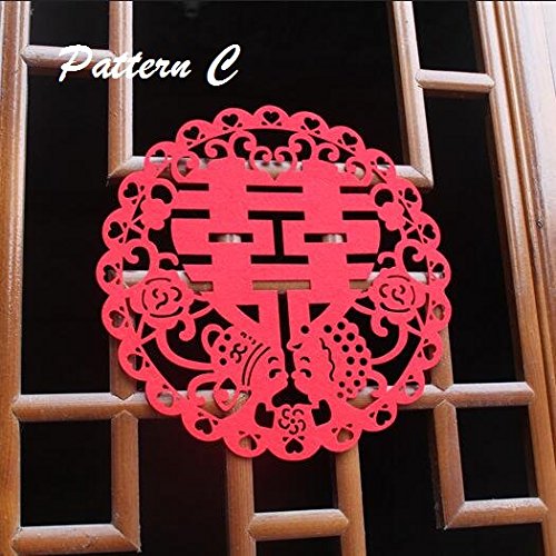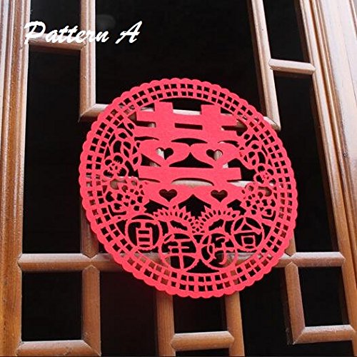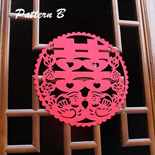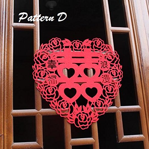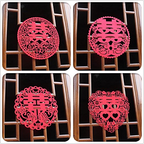 Chris-Wang 4Pairs Traditional Chinese Wedding Banquet Red Nonwovens Double Happiness XI Paper-cut/Papercuts/Paper Cutting for Window/Door/Mirror/Desk/Refrigerator Decoration