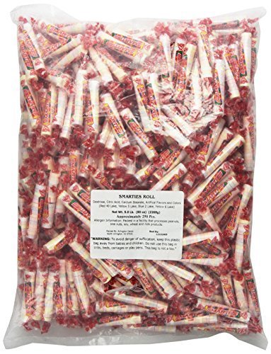 Bulk Smarty's Rolls. Indulge your sweet tooth with yummy Smarty's candy rolls in bulk. No need to worry about a mess in the heat because they won't melt. There are approximately 60 rolls per pound, so you'll get about 300 rolls for this price. 6 Flavors: White = Orange-Cream Yellow = Pineapple Pink = Cherry Green = Strawberry Purple = Grape Orange = Orange View nutritional and Allergen Information at smarties.com Made in the USA.Feature