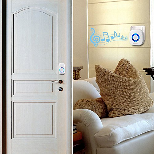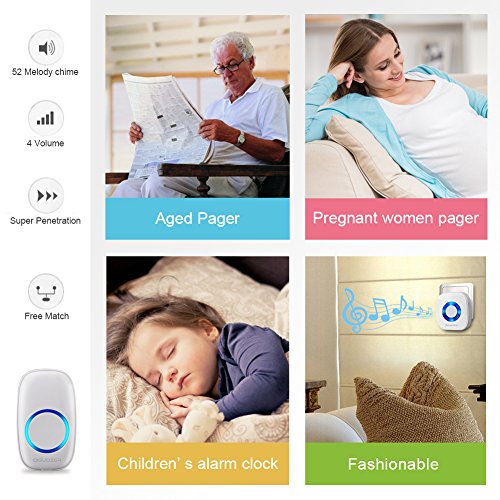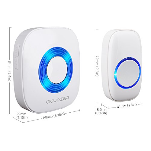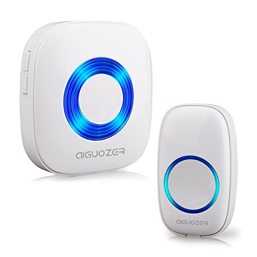 Aiguozer Wireless Doorbell Chime with Plug-in Receiver and Remote Push Button Transmitter Operating at over 900-feet Range, 52 Melodies Ring,4 Levels adjustable volume