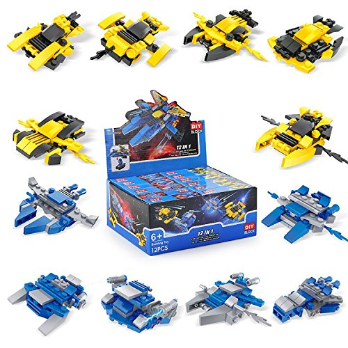 -. Feature : Includes: This diy space war battle building blocks set includes 12 different styles building blocks kits that are packaged separately in one box. A detailed assembling guide is included. 12 different kits have 12 individual assembling guides. / Design: Each style of the 12 space war vehicles is designed differently. 6 of them are in yellow and black, and the other 6 are in blue and gray. The 12 of them can be assembled together and converted into a deluxe space ship transfiguration following the instruction guide. Each kit's size: 4.33 * 1.18 * 3.54 inches. / Educational: This 12-style DIY toy building blocks set is the perfect educational tool to enhance children's manipulative ability, spatial vision, and creativity. Children are able to enjoy a fun time with friends while improving their different skills / Sharing: This diy space war battle building block set can act as a perfect family activity indoor or outdoor. Children are stimulated to learn how to cooperate with friends or family. This set is also a great toy for kids, such as birthday gifts and any other special occasion. / Safety & Recommendation: ALL Fun Little Toys' products are made by environmental friendly plastic and premium grade materials, which are sturdy, durable and safe. Recommend for children who are at least 6 years old. Do not keep the small parts of the toy in mouth in case your child swallows it.