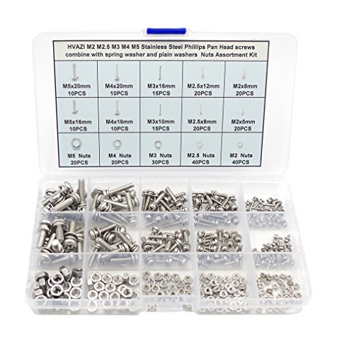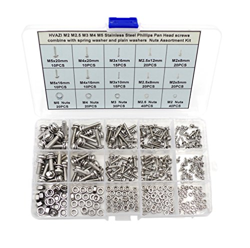 HVAZI M2 M2.5 M3 M4 M5 Stainless Steel Phillips Pan Head Screws Combine with Spring Washer and Plain Washers Nuts Assortment Kit