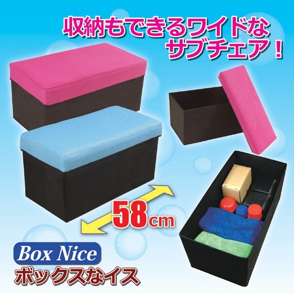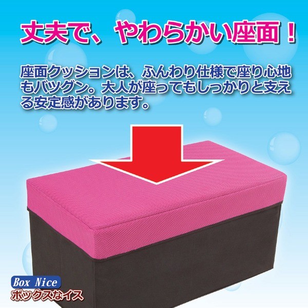 「サブチェアが欲しかった」「収納ボックスが欲しかった」という方にオススメするイスです。座面クッションはふんわり仕様で、座り心地も良好。座面を上げるとイス全体が収納スペースで、タップリと収納スペースを確保できます。幅は58センチとワイドタイプなのでゆったりと座っていただけます。大人はもちろん、お子様まで座りやすい高さ。使わなくなった、という時には折りたたんでしまうこともできます。