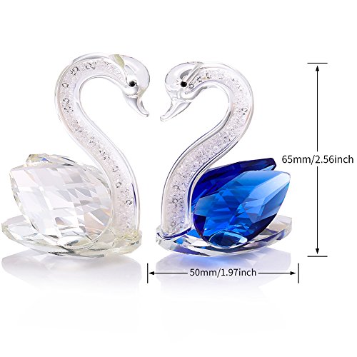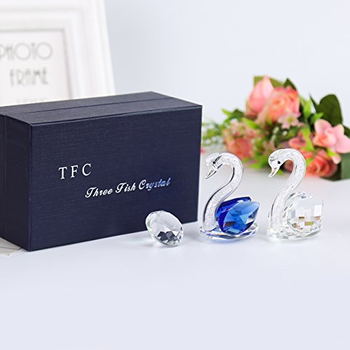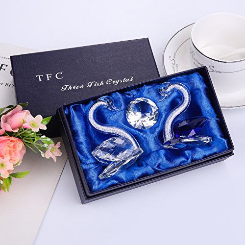 THREE FISH CRYSTAL 2 Pcs Super Cute Crystal Swan Statue , Collection Cut Glass Decorative Statue Animal Collection,Glass Swan Paperweight. Couple Suit .(Blue&Clear)