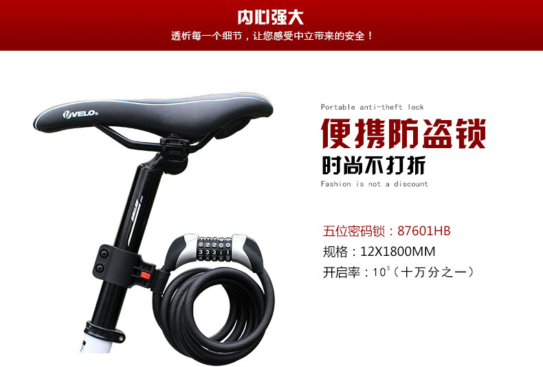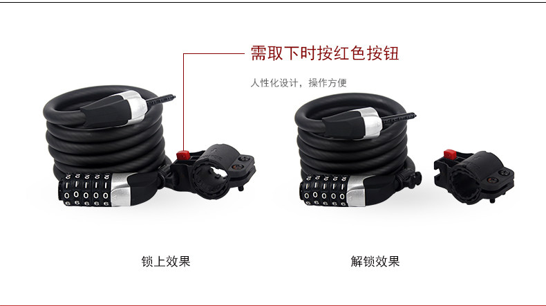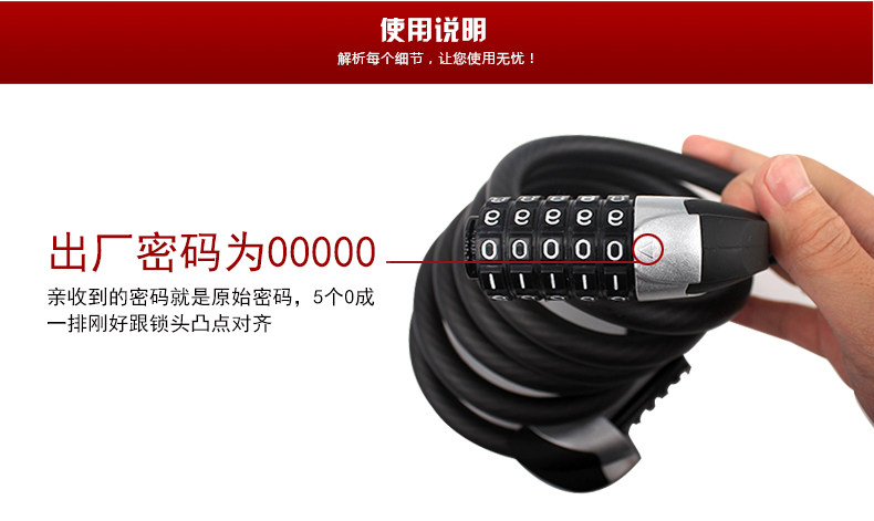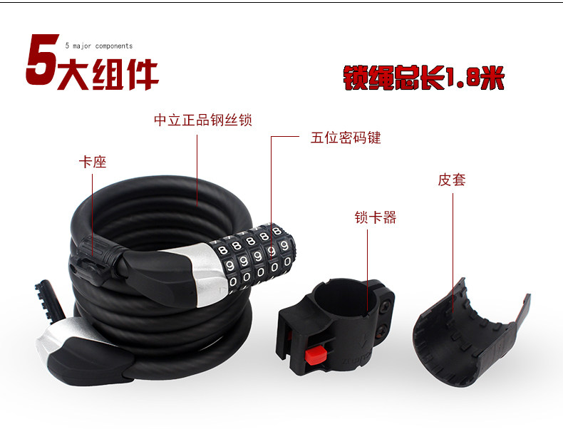 中立 5位密码锁山地车公路自行车锁折叠圈锁单车锁死飞钢丝防盗锁