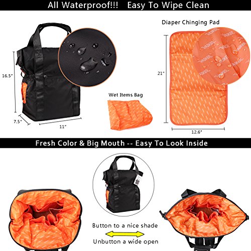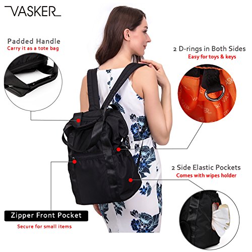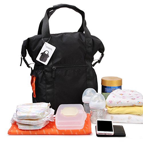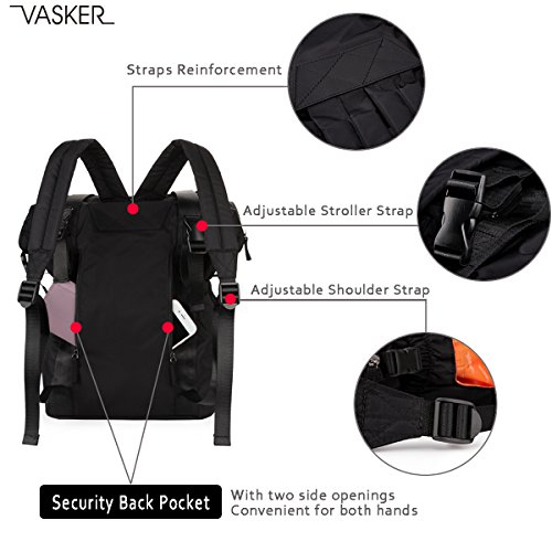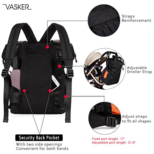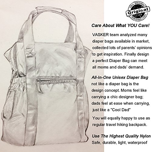Product DescriptionVASKER Diaper Bag Backpack Tote Bags with Stroller Straps Insulated Pockets Changing Pad VA-010