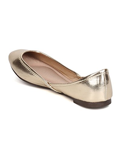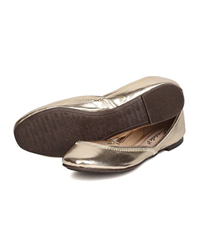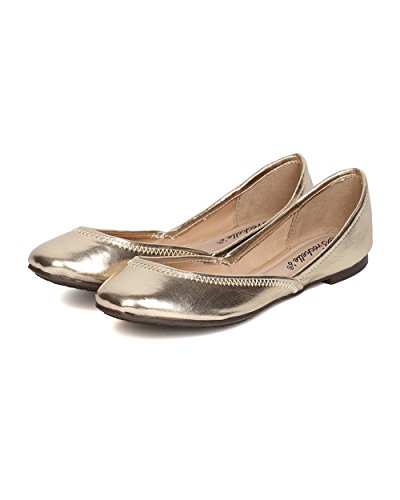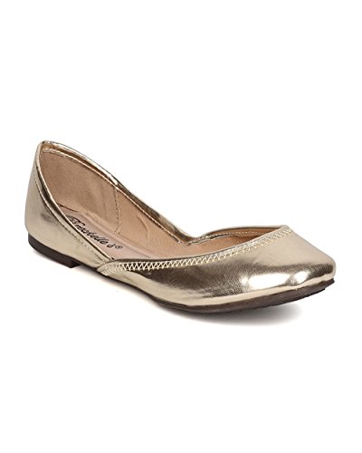 Studio : Breckelles Publisher : Breckelles Binding : Apparel Product Description These simple yet classy flats are made with a metallic leatherette upper, squared round toe, and scooped vamp. Also made with a flat heel, open shanks, and easy to slip on design. 0