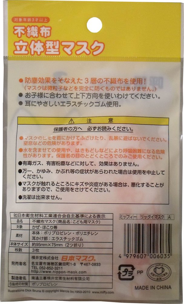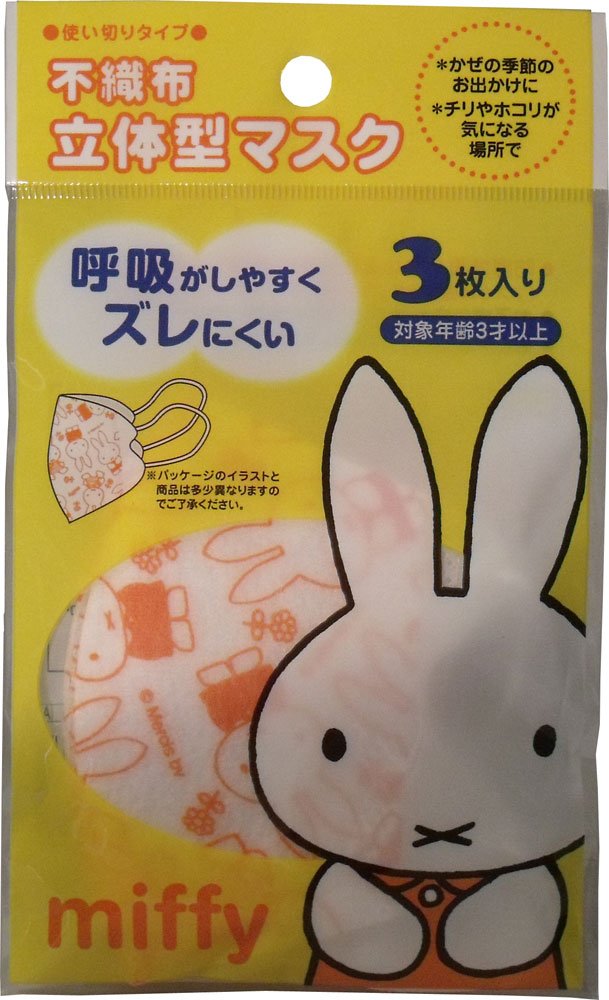 Miffy Mask (Child Size) 3pcs Breathe Healthy - Kids Flu Mask Kids Allergy Mask - Protection From Dust Pollen Allergens & Flu Germs