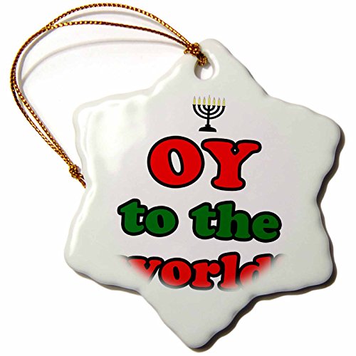 3dRose orn_159635_1 Oy to The World Jewish Christmas Joy to The World Snowflake Ornament, 3-Inch, Porcelain