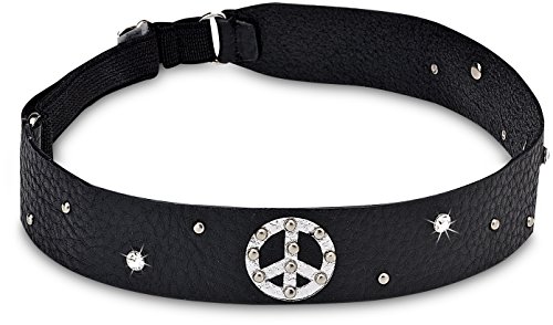 Layla Black Leather Elastic Headband with Peace Sign Gems